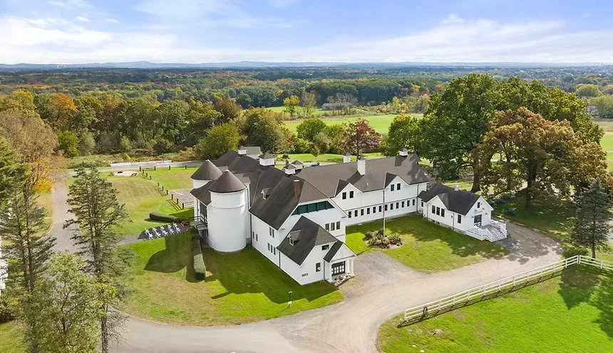 Willow Hill in Brooklyn, CT, is a 100-acre wedding venue that blends rustic charm with modern elegance, making it a perfect barn wedding venue. The Barn features floor-to-ceiling windows, scenic views, and a warm, open interior ideal for ceremonies and receptions, while the outdoor patio offers a fresh-air celebration space with a pool and covered seating. Couples can prepare in stylish dressing suites and stay overnight in the Historic House, complete with fireplaces and bedrooms. With single-day and weekend rental options and support from preferred vendors, Willow Hill provides everything needed for a memorable barn wedding experience.
